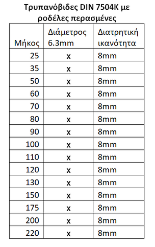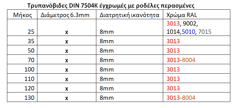 Τρυπανόβιδες με περασμένες ροδέλες νεοπρενίου, γαλβανιζέ και έγχρωμες. Αποκλειστικά, προέλευσης Ταιβάν. Διατίθενται και βίδες inox προέλευσης Γερμανίας.